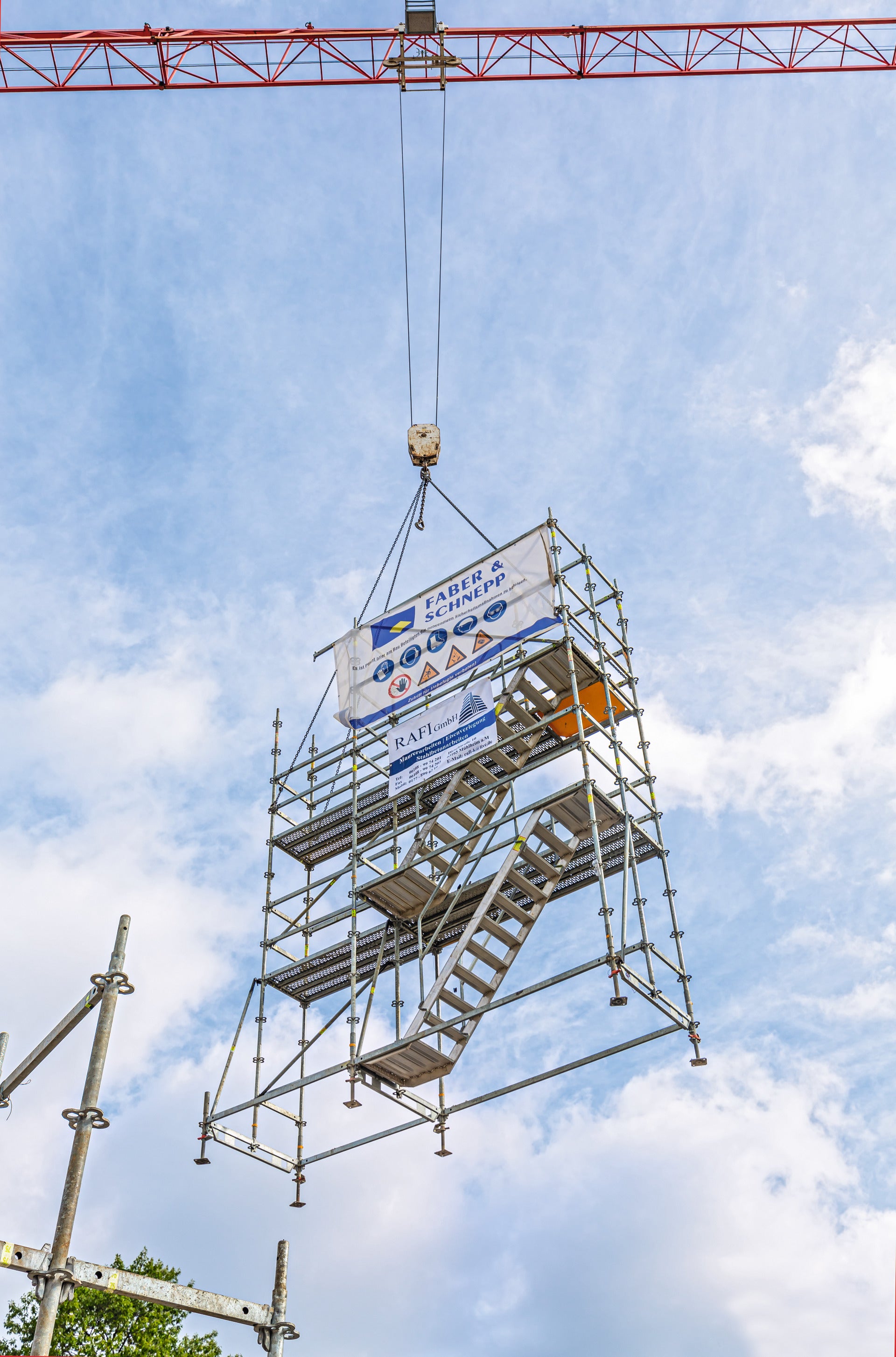 The reinforcement scaffolding, which is over 10 m high, can also be placed in the correct position using the crane.