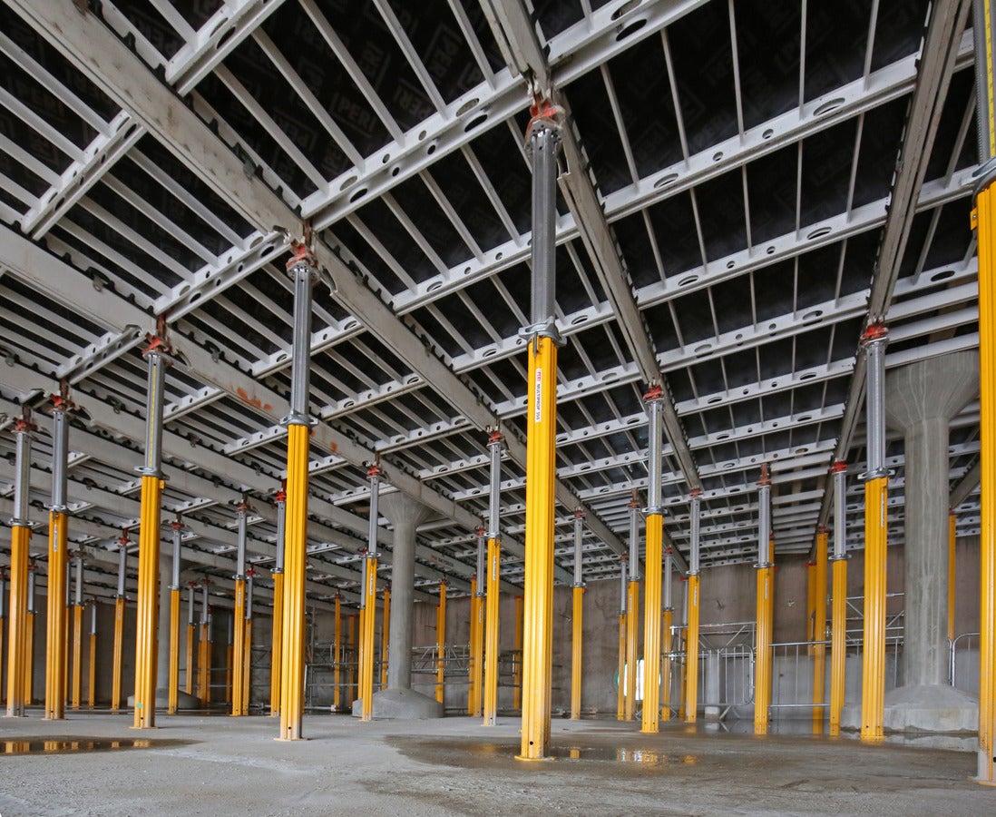 Low on-site material requirements due to early striking with the drophead and fast deployment of the panels and beams in the next storey.